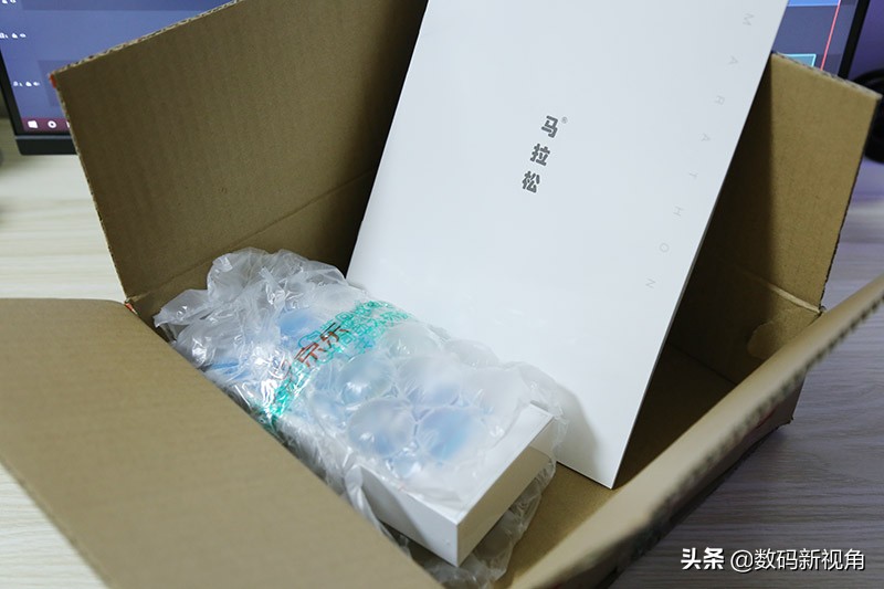 打开包装,没有想象中的惊喜,看到电池及工具被气泡袋捆在一起,另外赠送了一本马拉松的产品画册。